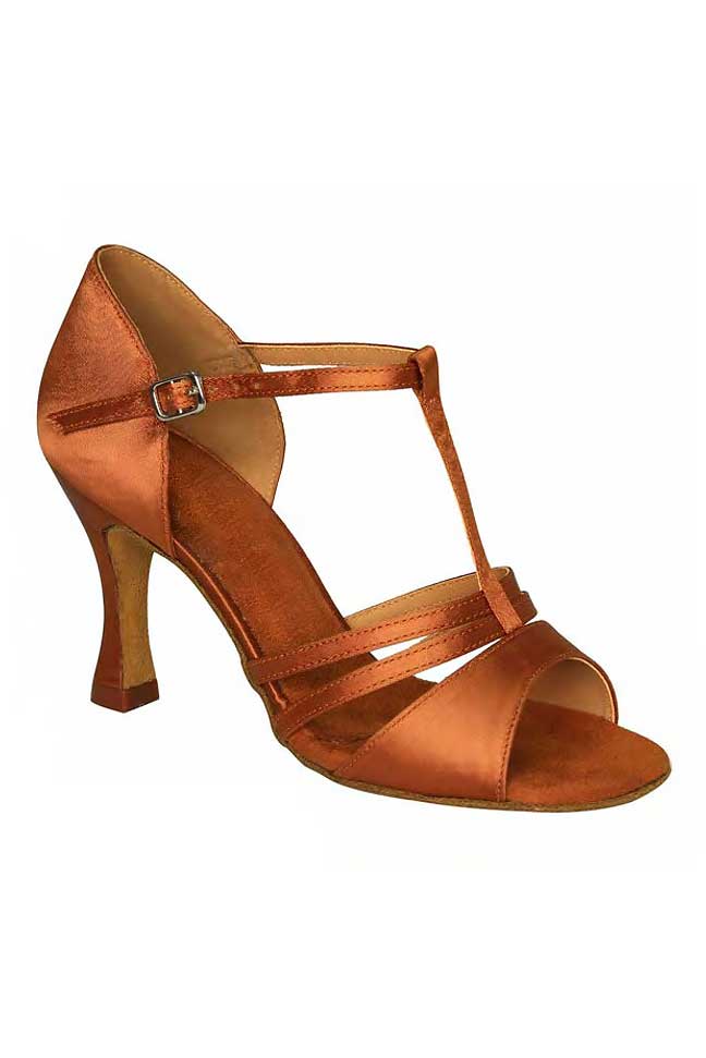Godance Λάτιν Υπόδημα Καφέ Σατέν με T Strap 168307