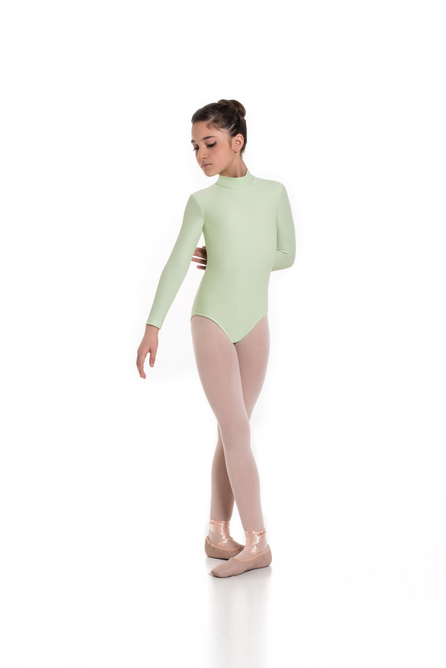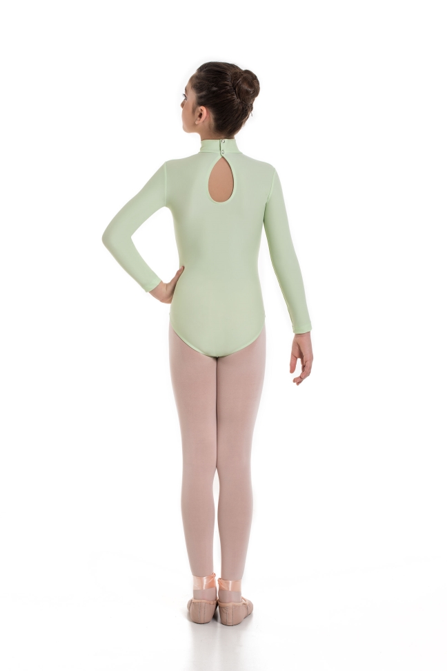 Girls 4/4 Sleeved Turtle Neck Leotard With Keyhole Back